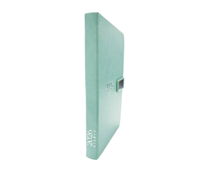 Agenda diaria de pasta rígida con cintillo magnético de PU con placa metálica y logotipo en color plata. Cuenta con 170 hojas (340 páginas), Incluye: cuadro de dedicatoria, hoja de datos personales, calendario 2026 y días festivos, calendarios 2025 a 2029, planificador anual, planificadores mensuales (12), agenda diaria 365 días, directorio de contactos y teléfonos de interés. Cuenta con resorte sujetador para bolígrafo y listón separador de color, impreso con el año 2026. Presentación: caja de regalo a color.