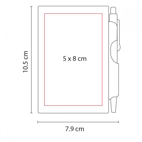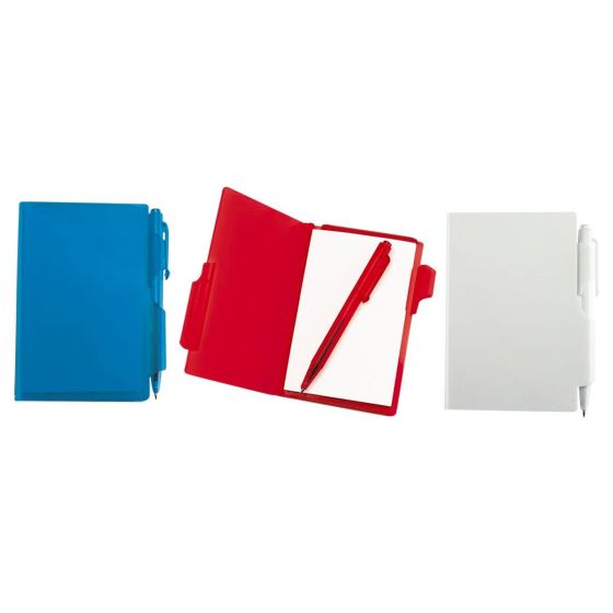 Block de notas con 60 hojas blancas. Incluye bolígrafo.