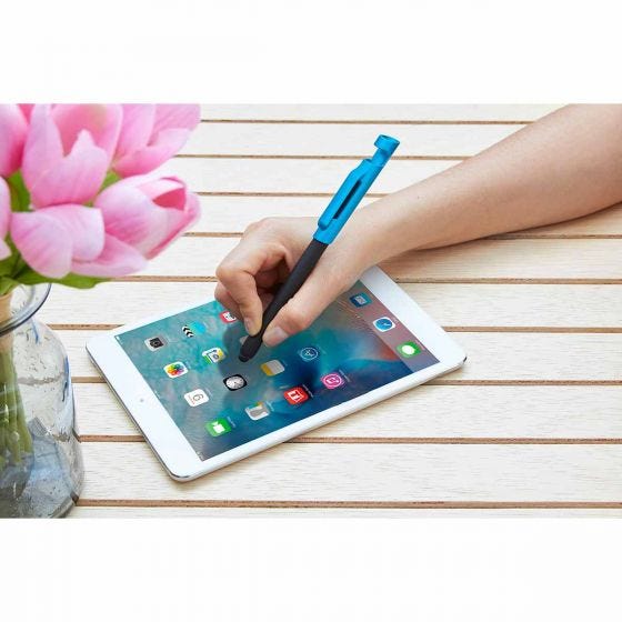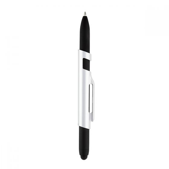 Bolígrafo con touch screen y base para smartphone. Terminado rubber.