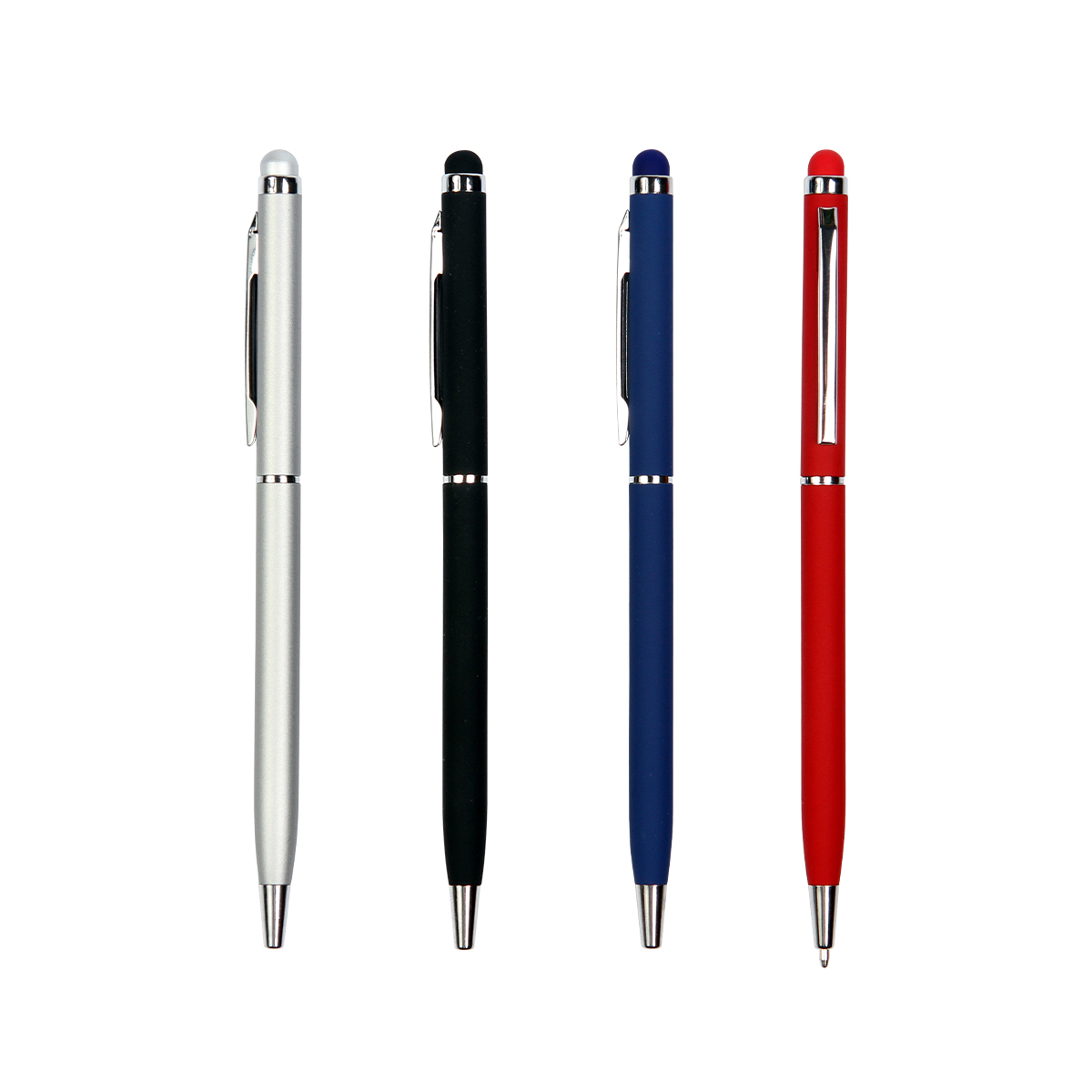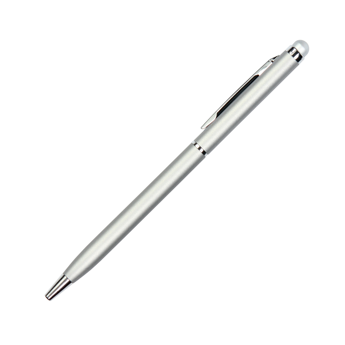Bolígrafo con barril de aluminio, clip metálico, punta plástica, con touch en la parte superior. Tinta de escritura azul.