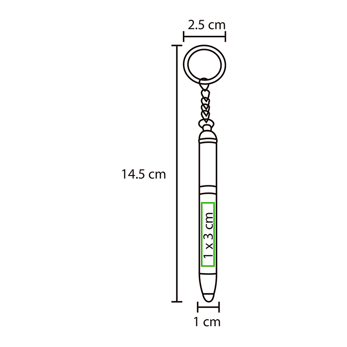 Bolígrafo mini llavero con puntero touch y detalle en piedras con tinta negra.