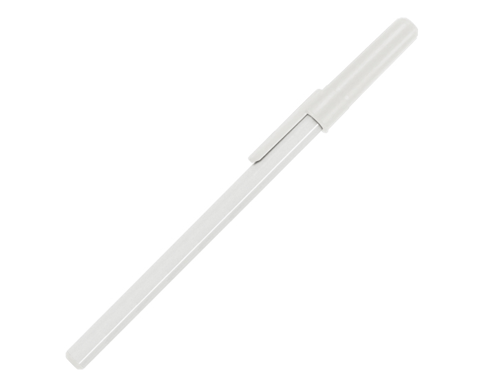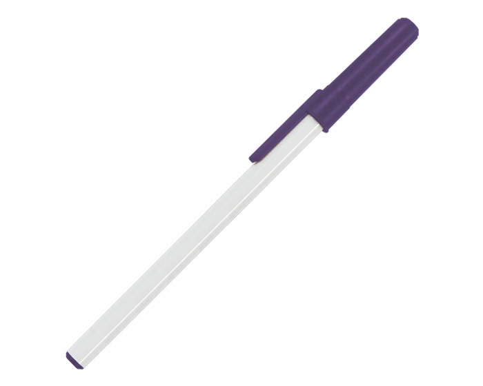 Bolígrafo básico, línea económica, cuerpo blanco sólido con tapa y tapón en color.