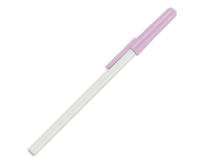 Bolígrafo de plástico con clip transparente.