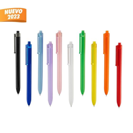 Bolígrafo con clip translúcido. Mecanismo pulsador.