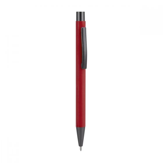 Bolígrafo metálico con terminado mate y clip suajado. Mecanismo pulsador. Incluye funda.