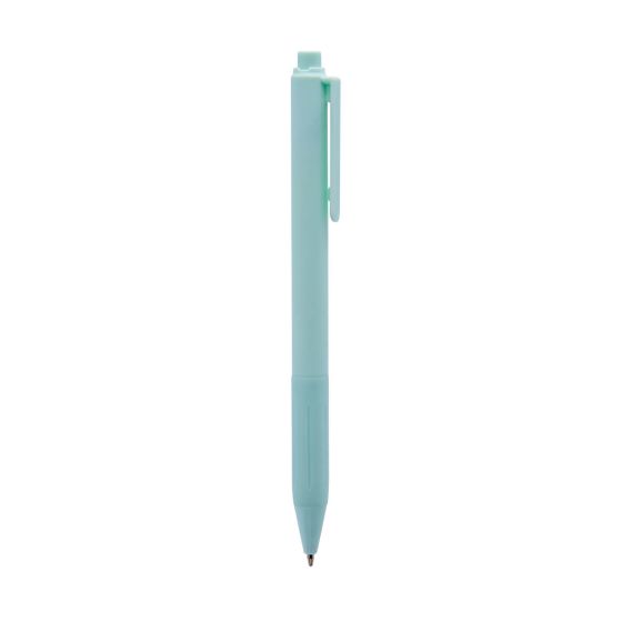 Bolígrafo en colores pastel. Grip de silicón antiderrapante. Mecanismo pulsador.
