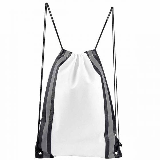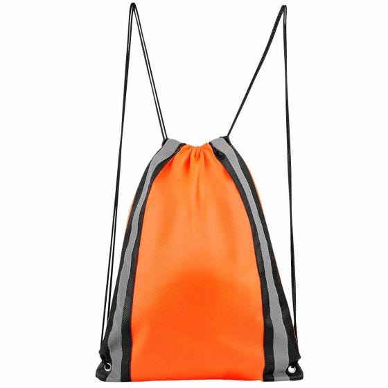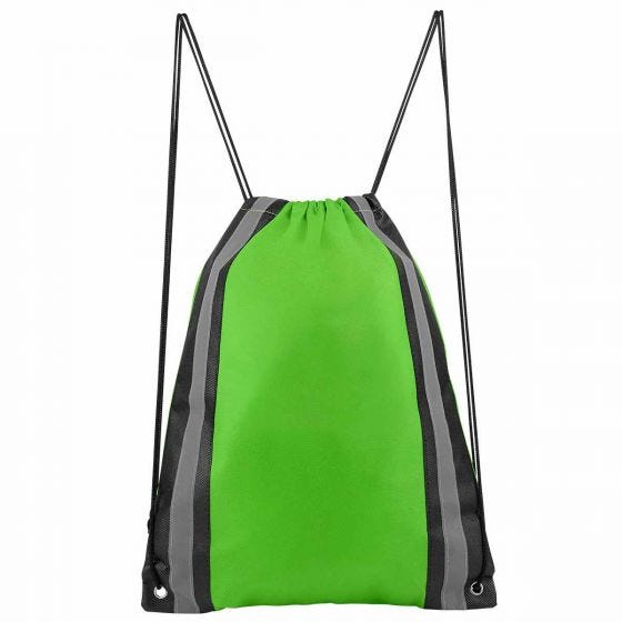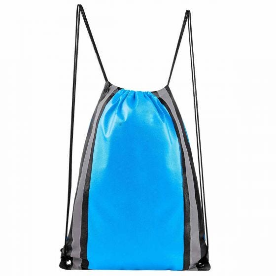 Bolsa-mochila con tirantes de cordón y cerrado de jareta. Incluye 2 tiras reflejantes al frente