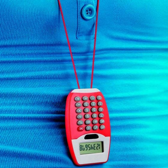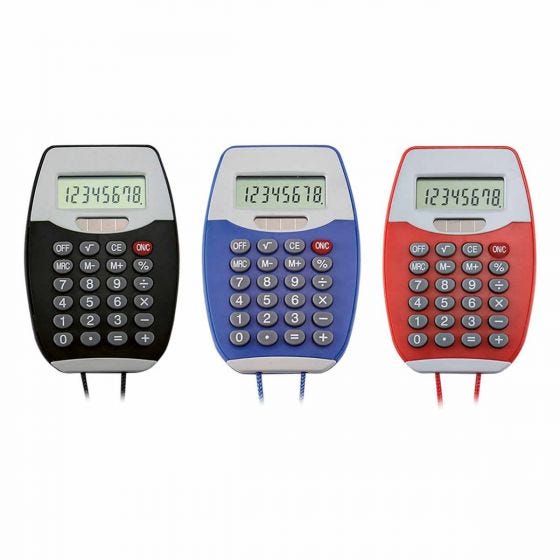 Calculadora de 8 dígitos. Incluye cordón de 48 cm. Batería solar.