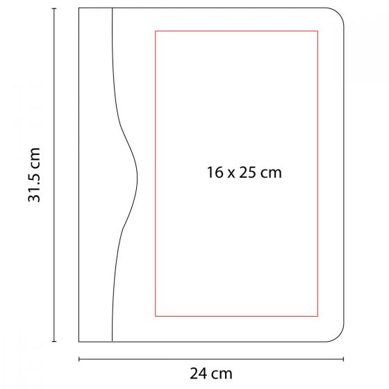 Incluye block de raya tamaño A4 con 20 hojas, elástico para bolígrafo, compartimento para smartphone, tablet y tarjetas. Batería auxiliar para smartphone con capacidad 4,000 mAh. Broche magnético con luz que al grabar el logo se ilumina. Bolígrafo no incluido.