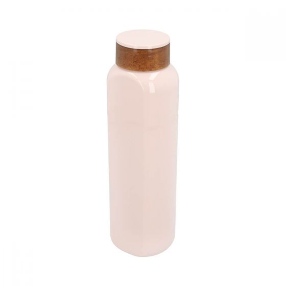 Cilindro de tritán con aditivo antimicrobiano que lo hace eficaz contra el crecimiento de bacterias. Tapa de plástico con fibra de agave. Sistema de rosca twist-off que permite abrir y cerrar la tapa en un giro. Por el tipo de material el color de la tapa puede variar. Revisar que la tapa no esté cerrada completamente. No exponer el cilindro a temperaturas mayores a 40 °C durante su almacenamiento y transportación. Mantener en su empaque individual antes y después de su transformación. No apto para bebidas calientes. No introducir en microondas.