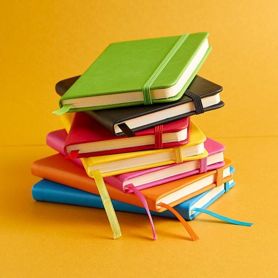 Libreta con 80 hojas de raya. Incluye separador de hojas y elástico para cerrar.