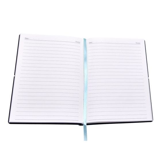 Libreta con 80 hojas de raya. Incluye separador de hojas y elástico para cerrar.