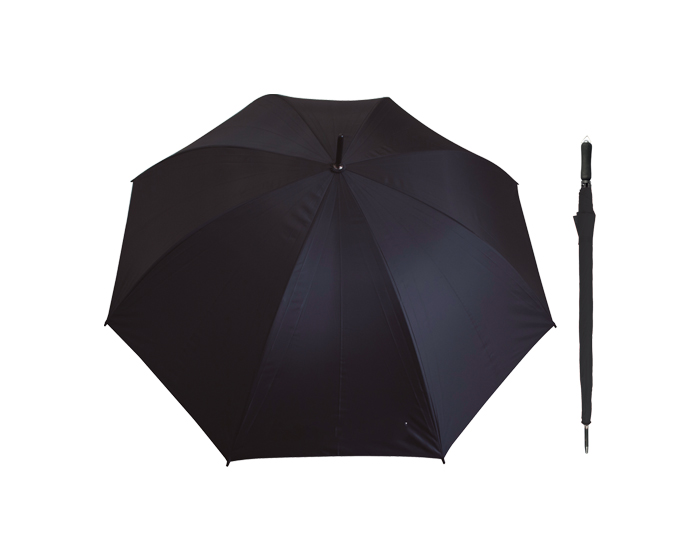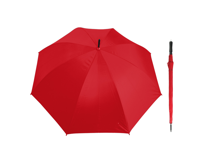Paraguas de apertura manual, varillas y eje de metal reforzado, mango de EVA con arillo metálico para colgar. 8 gajos.