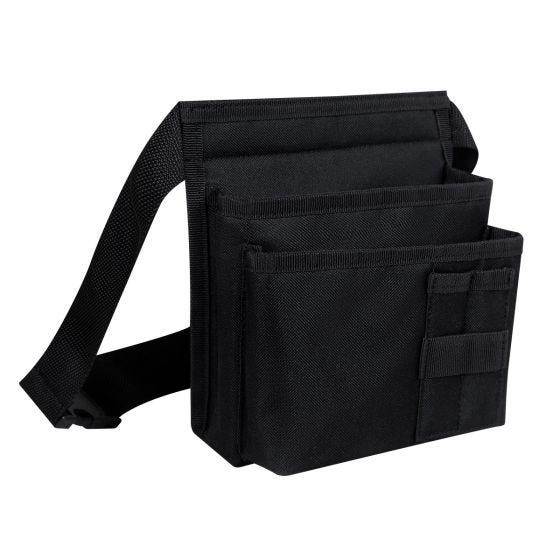 Bolsa para herramientas con cinturón ajustable y broche de plástico. Incluye dos amplios compartimentos para colocar y tener acceso rápido a llaves, cintas, pinzas etc… En la parte frontal se agregan dos compartimentos para destornilladores y 1 cinta porta martillo.