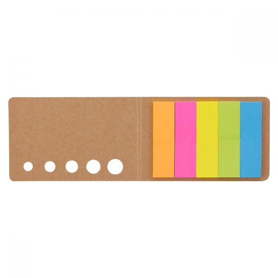 Libreta con 60 hojas de raya. Incluye notas adheribles de diferentes colores y bolígrafo ecológico.