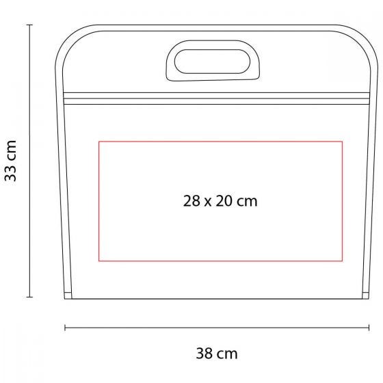 Bolsa principal con espacio para documentos. Bolsa frontal con cierre y asas de agarre superior de plástico.