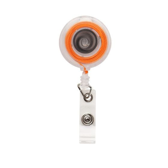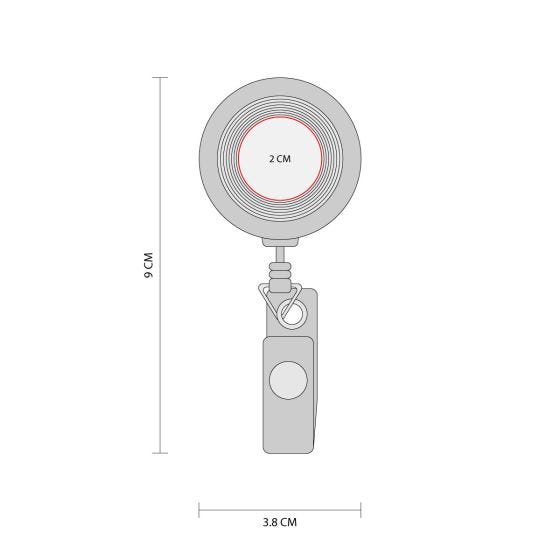 Porta gafete retráctil con clip sujetador. Incluye flexómetro de 100 cm.
