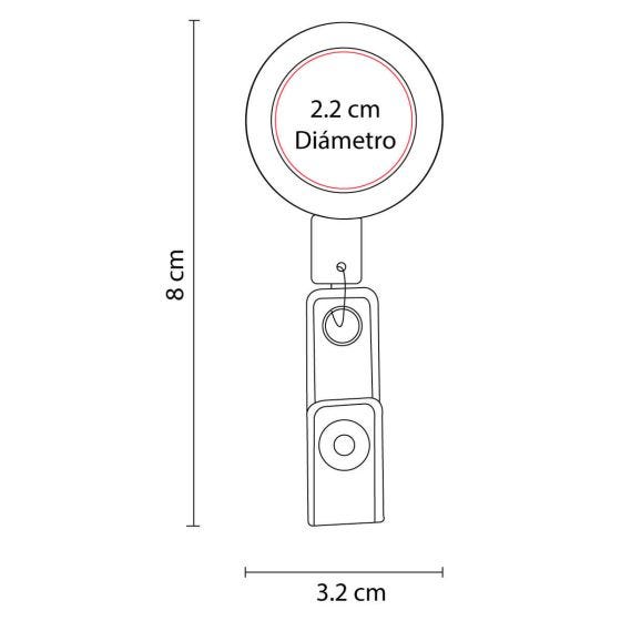 Porta gafete retráctil con clip sujetador. Incluye flexómetro de 100 cm.