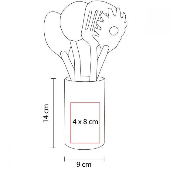 Incluye base y 4 utensilios de cocina: cuchara, cucharón, pala y cuchara de pasta.