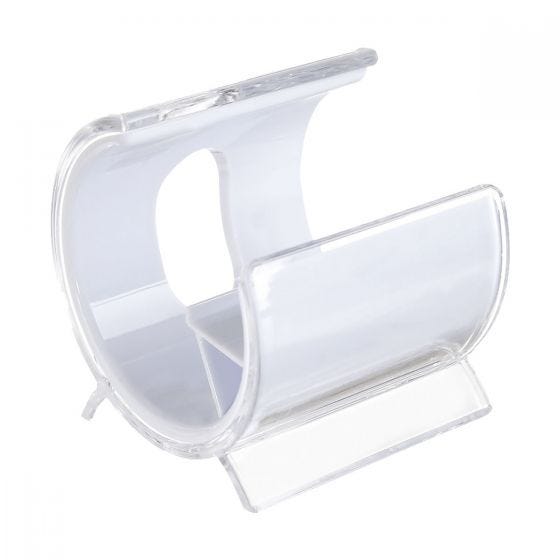 Soporte con mecanismo ajustable para smartphones de 6 a 8 cm de ancho. Ángulo de rotación de 360°. Se monta en las ventilas del aire acondicionado.